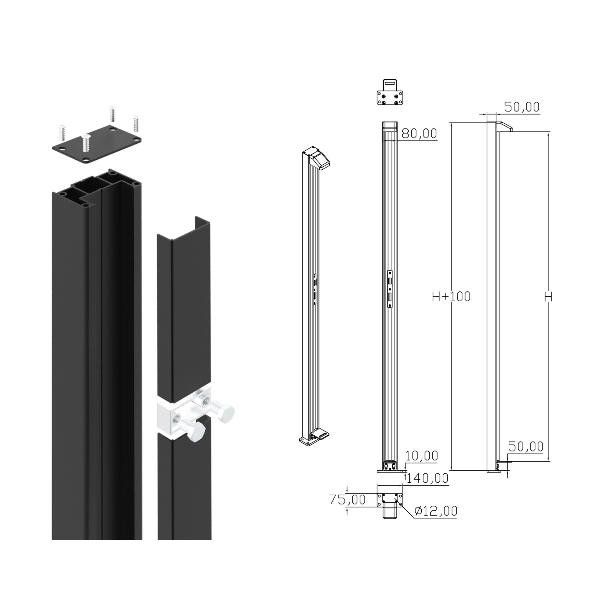 For 2000mm high gates, a 2400mm post is required.