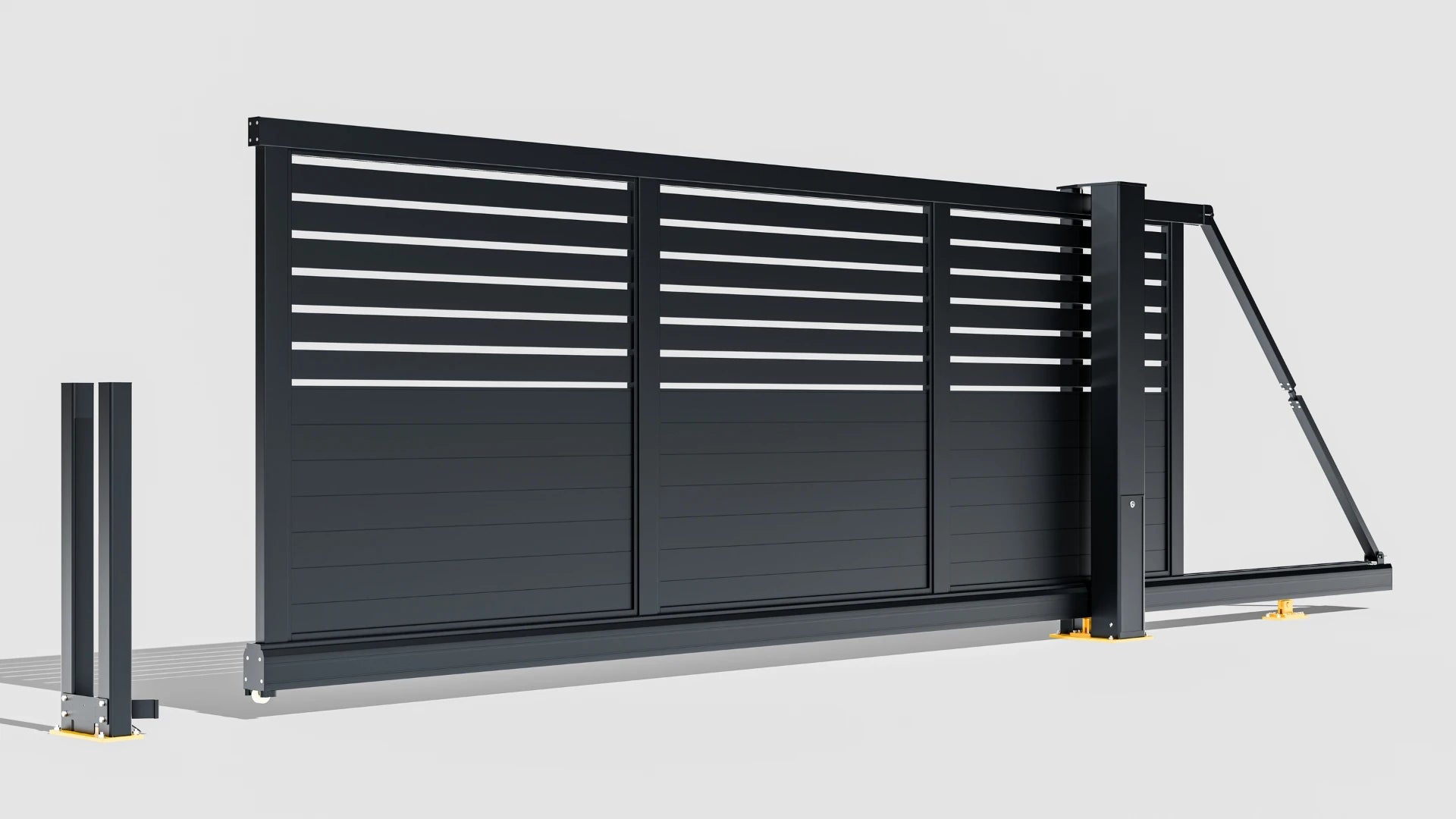Enhanced aesthetics with concealed components provide a clean design. Sliding gates save operational space compared to swing gates. A wide range of designs ensures a perfect match for your property’s style. High-quality aluminium construction offers durability and weather resistance.